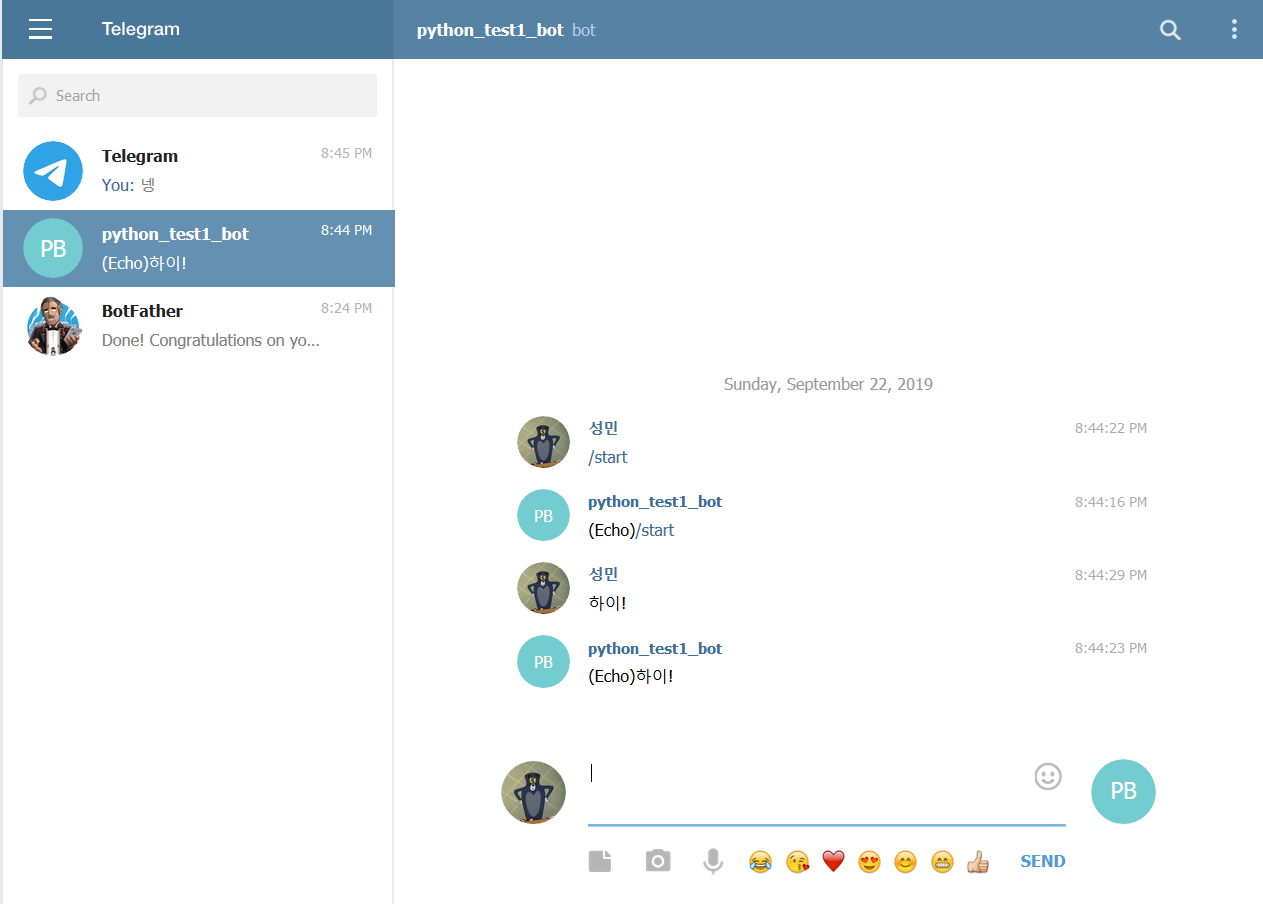 파이썬 텔레그램 쓰기 - 1. Bot 계정 생성 및 echo 예제 본문