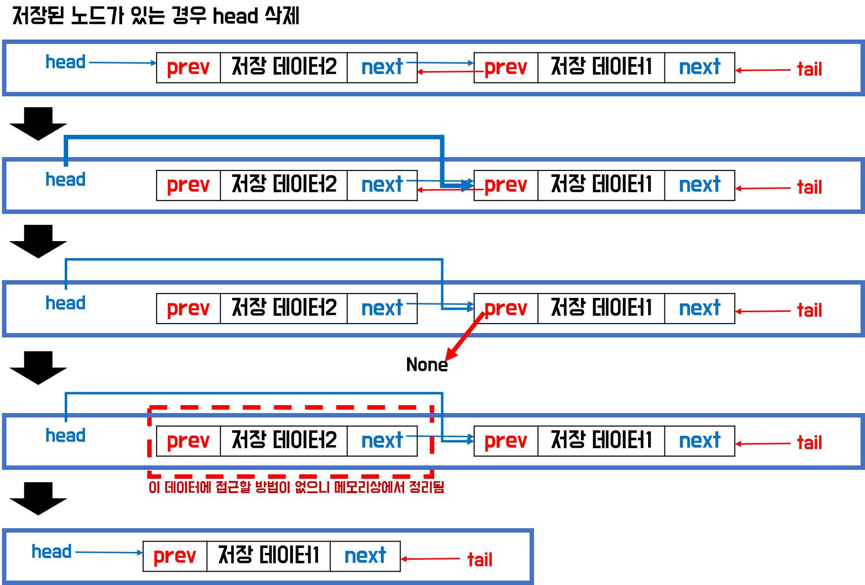#2. 새로운 head의 prev를 None으로 변경